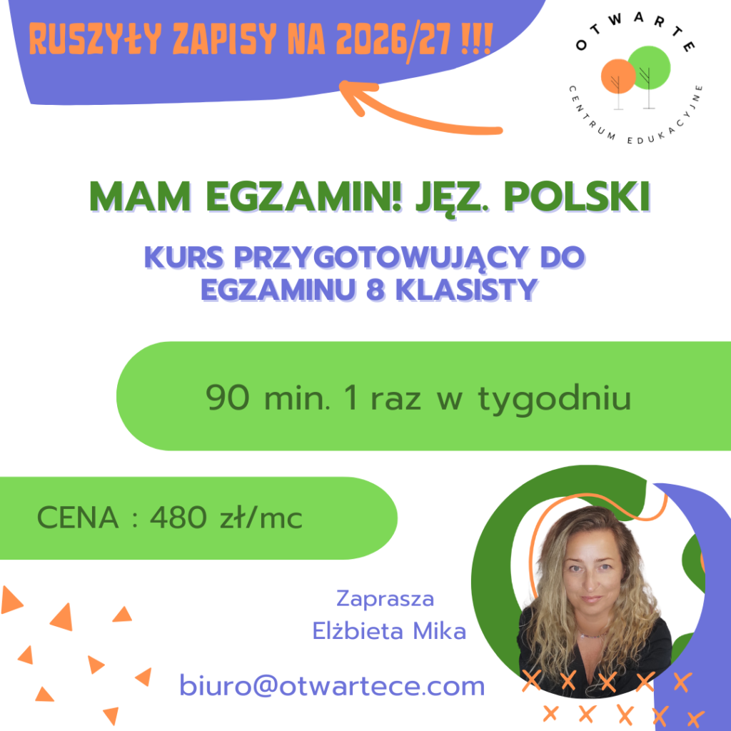 Jeśli kończysz szkołę podstawową w roku szkolnym 2026/27 i zależy Ci, by w atrakcyjny i zindywidualizowany sposób skutecznie przygotować się do egzaminu, ten kurs jest dla Ciebie!